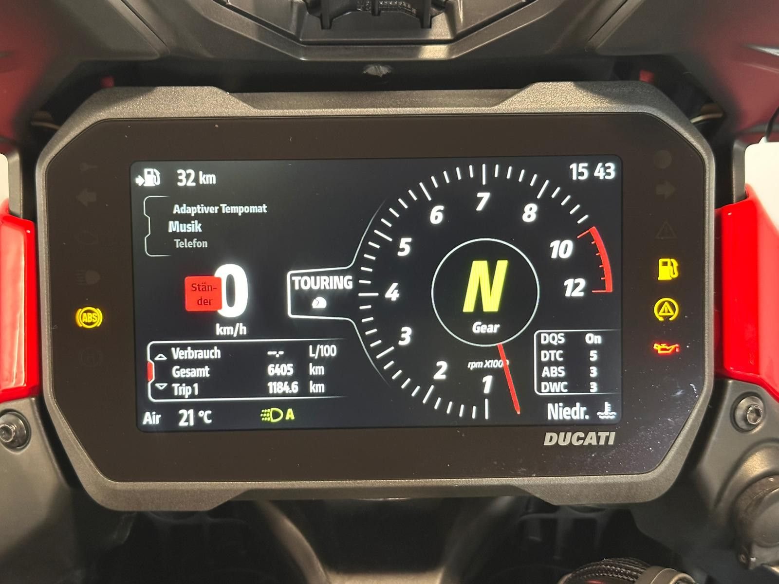 Sehr gepflegter Zustand. Um- und Unfrallfrei und Scheckheftgepflegt.Serienausstattung: Vehicle Hold Control (VHC), Riding Modes, Power Modes, Kurven-ABS, Ducati Traction Control (DTC), Ducati Wheelie Control (DWC), Voll-LED-Scheinwerfer mit Daytime Running Light (DRL), Ducati Cornering Light (DCL), Ducati Brake Light (DBL), elektrische Druck- und Zugstufendämpfung mit Ducati Skyhook Suspension (DSS) EVO, Ducati Quick Shift (DQS) Up/Down, Adaptive Cruise Control (ACC), Blind Spot Detection (BSD), Hands-free, hintergrundbeleuchtete Lenkschalter, 6,5-Zoll-TFT-Farbdisplay mit Ducati Connect und Full-Map-Navigationssystem, Freisprecheinrichtung