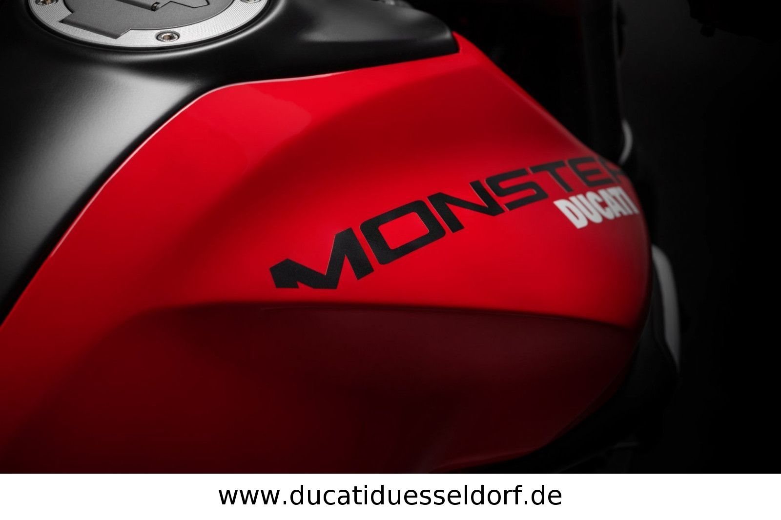 Die Essenz von Ducati in einem modernen und zeitgemäßen Motorrad: Nicht mehr und nicht weniger ist die neue Monster in ihrer bislang kompaktesten und leichtesten Form. Die neue Monster greift das ursprüngliche Konzept von 1993 wieder auf. Mit dem neuen, vom Superbike Panigale V4 abgeleiteten Rahmen aus Aluminium sinkt das Gewicht auf nur 166 kg (trocken). Damit ist sie 18 kg leichter als die Monster 821. Das Design besticht durch einfache, klare Linien. Der kompakte Look beschränkt sich auf das, was unverzichtbar ist: Motor, Sitz, Tank und Lenker. Alles, was man braucht, um Spaß zu haben.