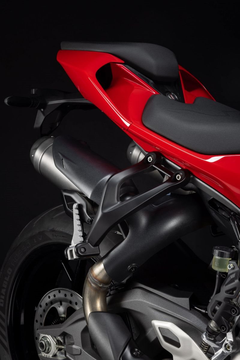 Serienausstattung: Ducati Quick Shift (DQS) Up/Down 2.0, Voll-LED-Scheinwerfer mit Daytime Running Light (DRL), automatische Blinkerrückstellung, Coming-Home-Funktion, Soziussitz und -fußrasten, Sachs-Lenkungsdämpfer