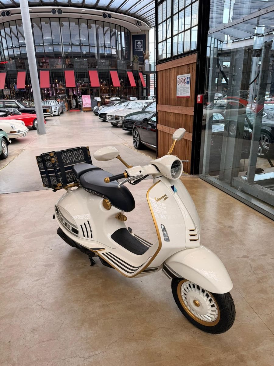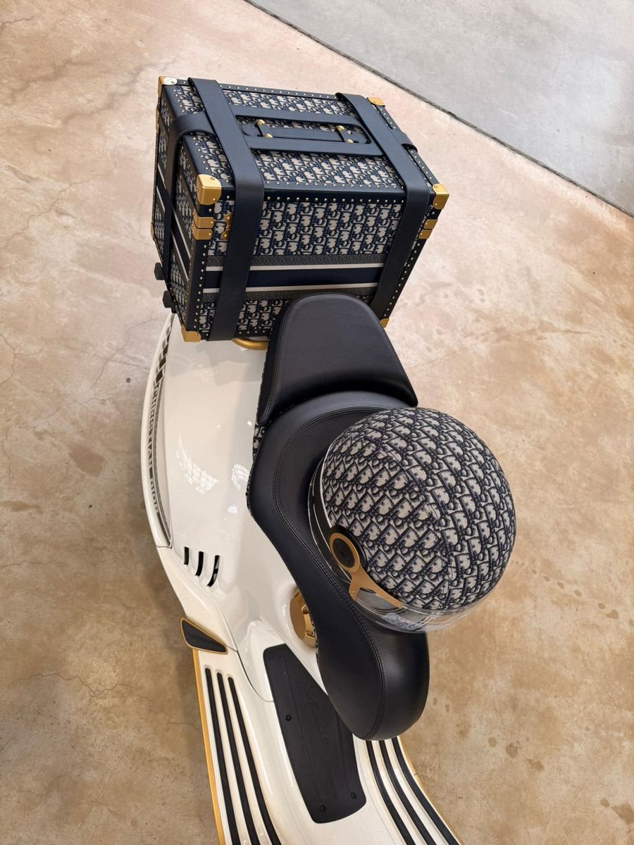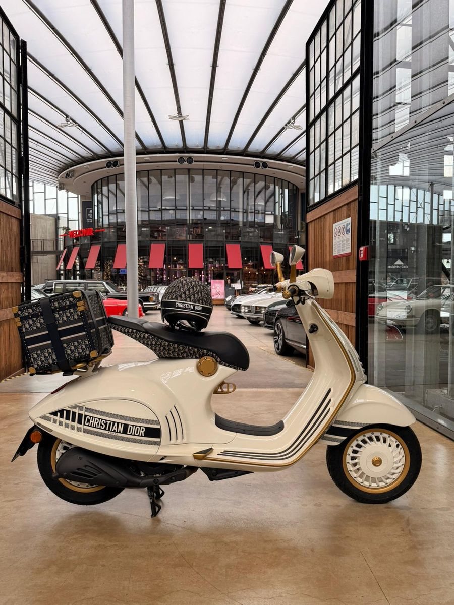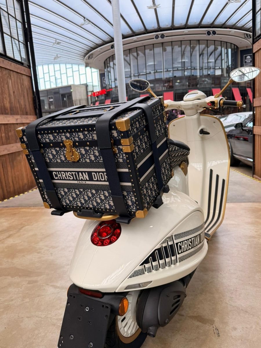 Zum Verkauf steht eine äußerst seltene Dior x Vespa 946 Limited Edition, entstanden aus der Kooperation zweier ikonischer Marken: Dior und Vespa. Dieses Modell repräsentiert die Schnittstelle von Haute Couture und italienischer Ingenieurskunst und richtet sich gezielt an Sammler sowie anspruchsvolle Liebhaber exklusiver Objekte.
