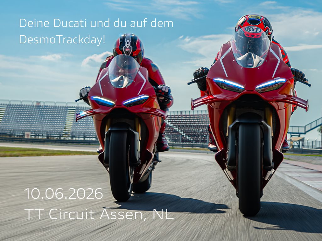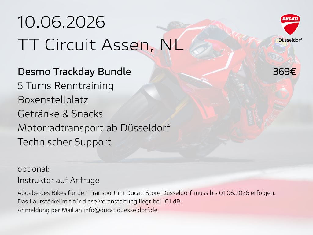 Achtung: Die Plätze sind begrenzt, daher nicht lange warten! Zur Reservierung eines Platzes auf der Warteliste einfach eine Mail an info@ducatiduesseldorf.de schicken. Die verbindliche Anmeldung folgt danach. Bitte beachte das Lautstärkelimit der Veranstaltung von 101 dB.