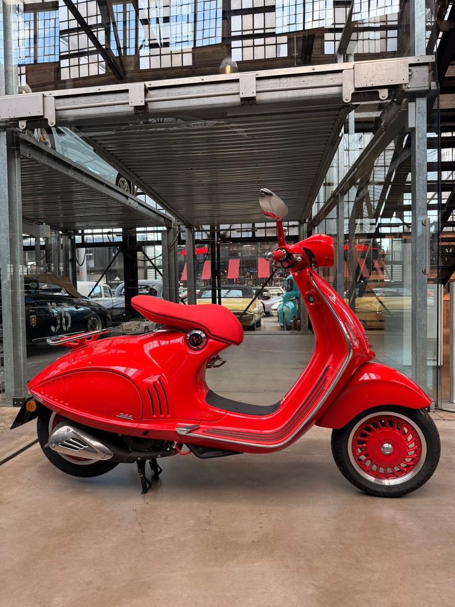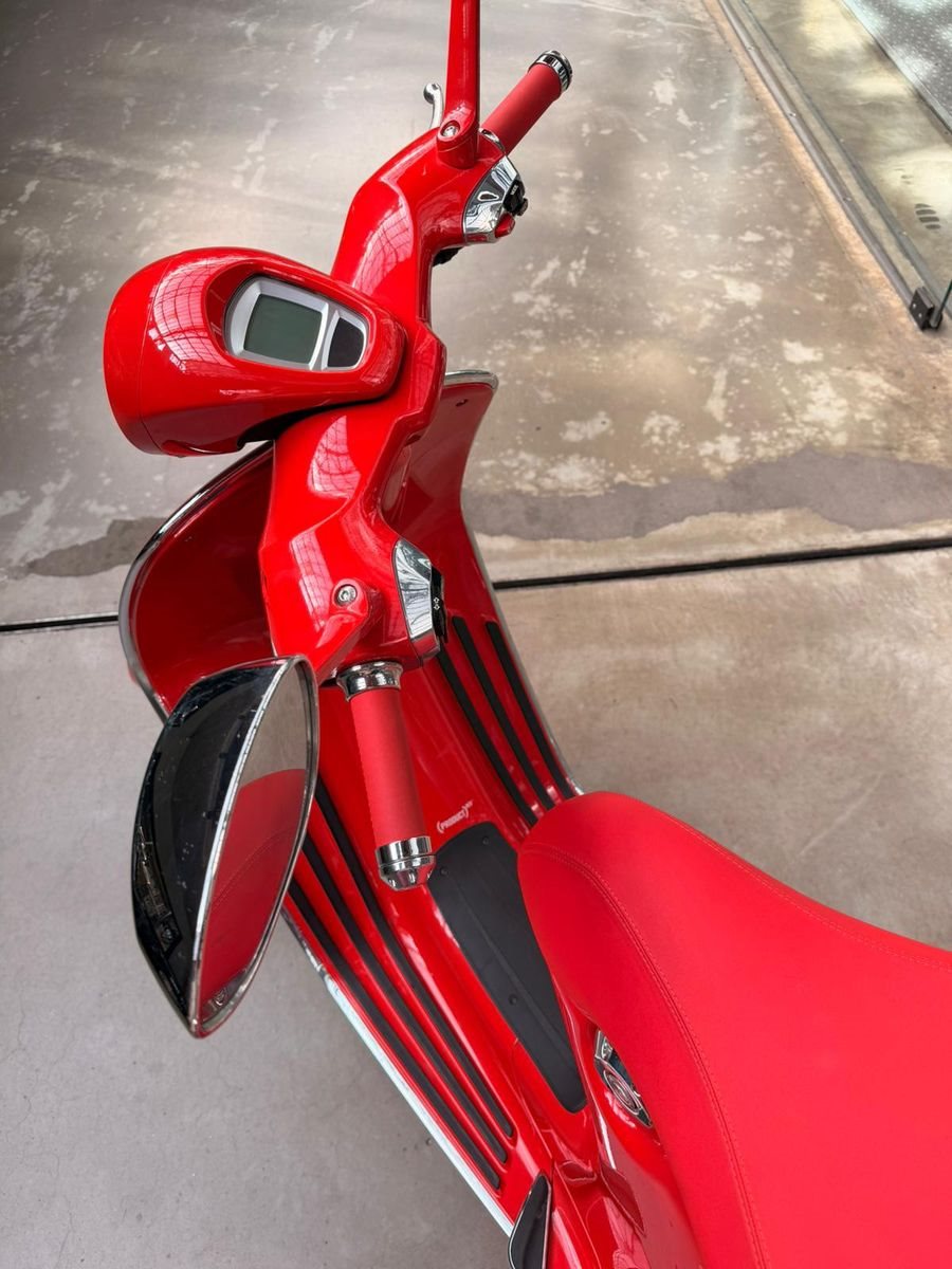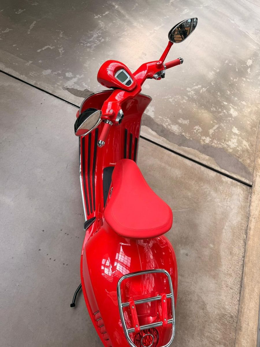 Die Vespa 946 gehört zu den exklusivsten Modellen der Marke und verbindet ikonisches italienisches Design mit hochwertiger Verarbeitung. Die komplett rote RED Edition ist eine besondere Sonderversion, bei der ein Teil des Verkaufserlöses ursprünglich an den Global Fund zur Bekämpfung von AIDS, Tuberkulose und Malaria ging.